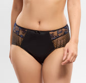 High-waisted full briefs Front and back in soft, opaque mesh Striking lace on the sides to give the silhouette a daintier look Discreet finish thanks to turned-back elastic Waist featuring decorative elastic Square gold charm matching the rest of the line Spanish embroidery French lace The Luna briefs offer reassuring coverage combined with a modern look. Their opaque, soft and comfortable mesh fabric is enhanced with striking lace on the sides, giving the silhouette a daintier l...
