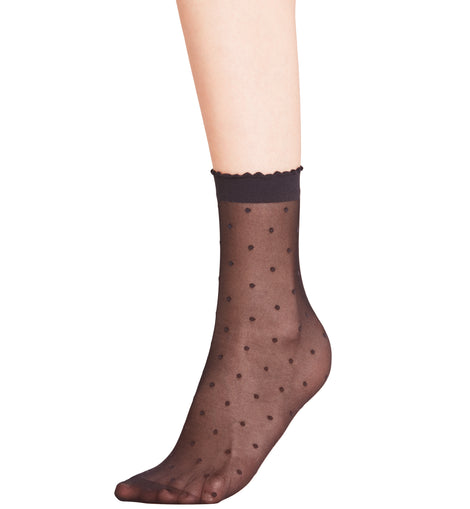 Polka dots return this season as the top highlight. Transparent ankle socks with modern polka dots play with this trend. A classic look matching any kind of outfit for every occasion. The ankle sock´s perfect fit provides the wearer with maximum comfort.