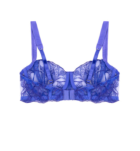 Inspired by the beauty of the Iris flower, this underwired balcony bra combines our soft Italian tulle with bespoke embroidery and sumptuous silk, in our bestselling bra shape. Crafted in Portugal in a feminine shade of cornflower blue, the Iris Balcony bra is an excellent choice for all bust sizes.