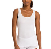 The HANRO Cotton Seamless Tank Top is a basic from HANRO of Switzerland; the best Cotton Seamless ever. Featuring seamless sides, hemless bottom and tailored from 100% cotton softened using an innovative new mercerization technique. This stylish and modern women's tank features a satin trimmed scoop neckline and straps for easy layering, plus the versatility to wear as a stylish top.
