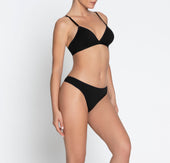 Thong in very fine, ultra-soft knit. Bias cutouts at the back.